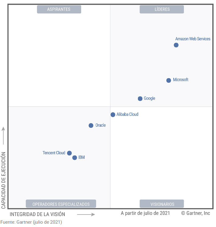 Amazon Web Services y Google Cloud Platform, líderes del mercado junto con Azure